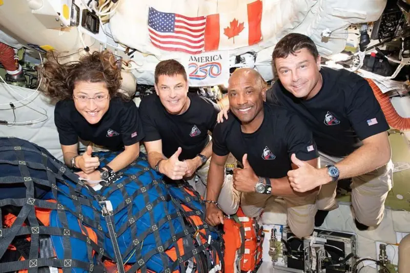 En la transmisión en directo, se pudo escuchar a un locutor decir que los cuatro astronautas están «en excelente condición».