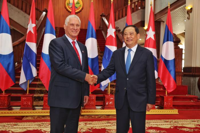 Con cálidas palabras, el compañero Thongloun Sisoulith, secretario general del Partido Popular Revolucionario Lao y presidente de la República Democrática Popular Lao, recibió en la mañana de este domingo (hora local) al Primer Secretario del Comité Central del Partido y Presidente de la República, Miguel Díaz-Canel Bermúdez, en su tercera visita a Laos.