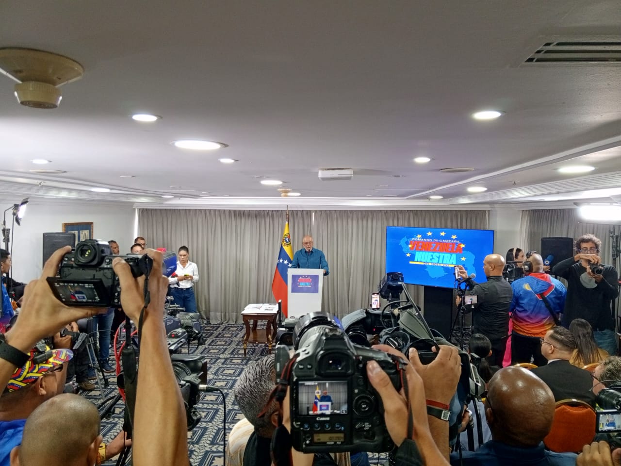 Ante las interrogantes de corresponsales internacionales, el Jefe del Comando de Campaña Venezuela Nuestra reiteró el respeto a los diez candidatos, con el mismo derecho de ser elegidos.