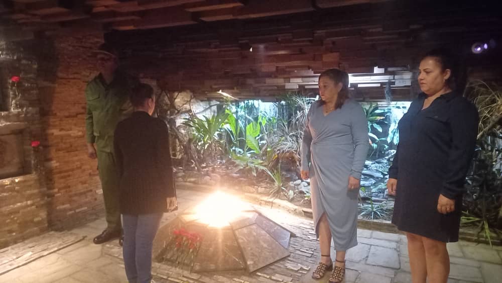 Aquí la integrante del Comité Central del Partido y su primera secretaria en el territorio Susely Morfa González, acompañada por el general de división Raúl Villar Kessell, jefe del Ejército Central, y la gobernadora de la provincia Milaxy Yanet Sánchez Armas, depositaron rosas rojas ante los nichos que inmortalizan el legado del Guerrillero de América y sus compañeros del Destacamento de Refuerzo.