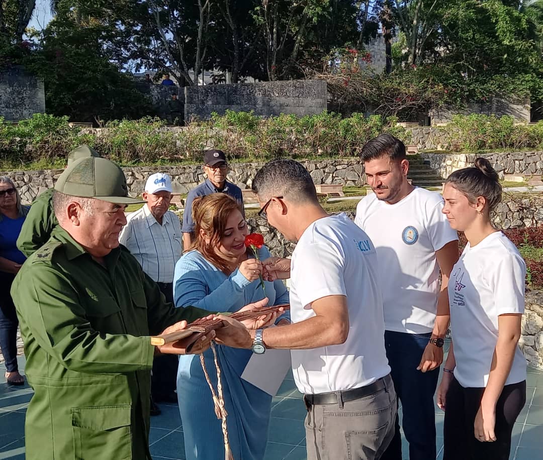 La jornada también estuvo marcada por la evocación a los mártires que reposan en el Mausoleo Frente Las Villas, una llama eterna que marca el sendero para siempre.