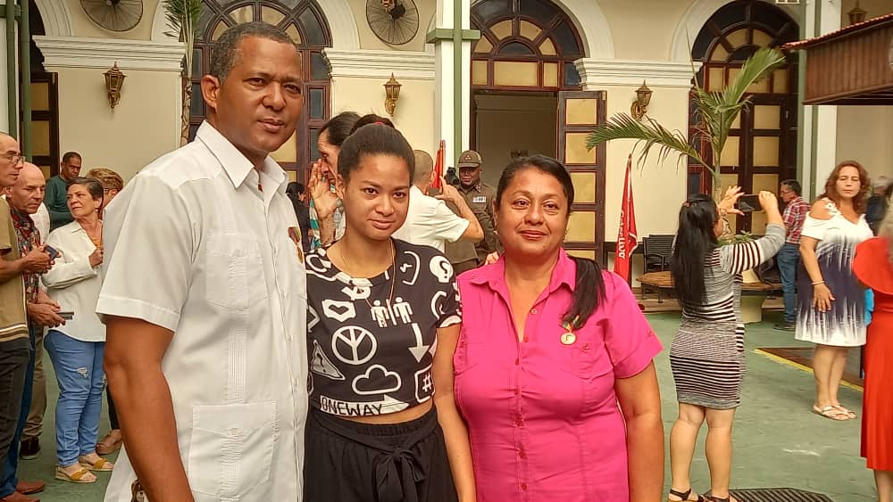 Al recibir la medalla Jesús Menéndez, confesó que el corazón no le cabía en el pecho. Dijo sentir orgullo y privilegio, sobre todo en un momento en que se confirma la convicción que uno tiene para defender esta patria. Recordó que hace unos días participaron en la firma por la patria, y ratificó que están dispuestos y listos a defender el precio que sea necesario.