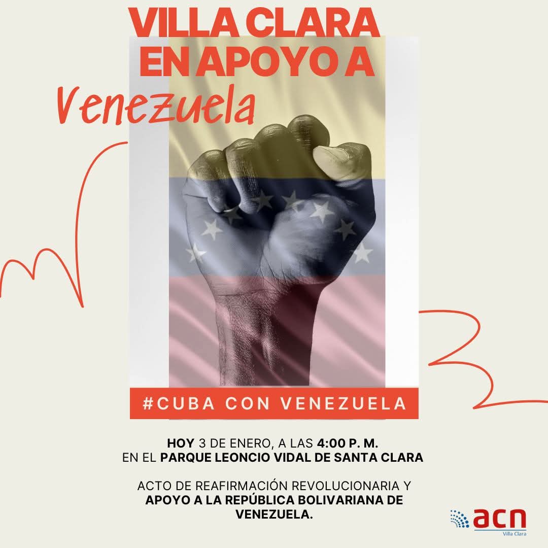 Con una condena unánime y un renovado compromiso de solidaridad, el pueblo villaclareño se sumó hoy al rechazo nacional e internacional hacia la agresión militar perpetrada por el gobierno de Estados Unidos contra la República Bolivariana de Venezuela.