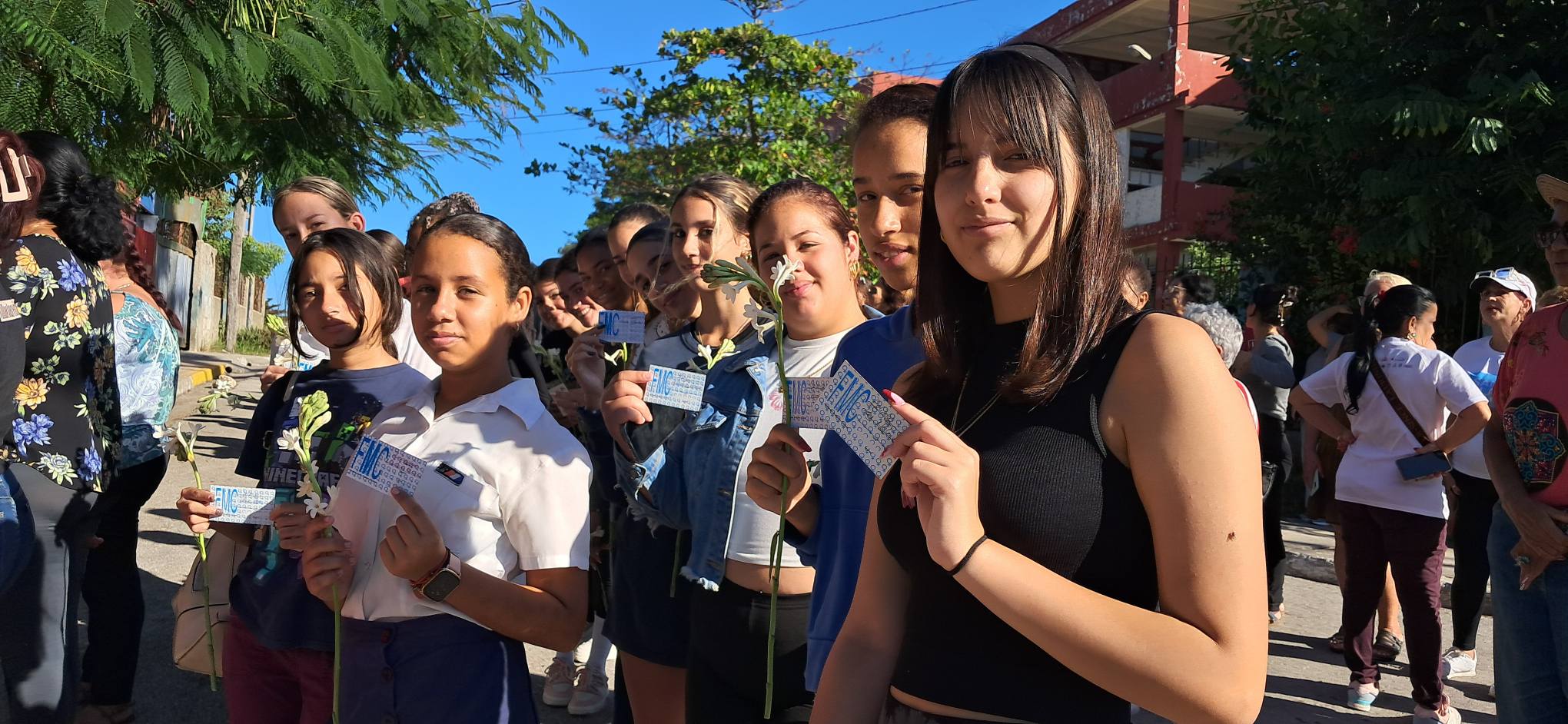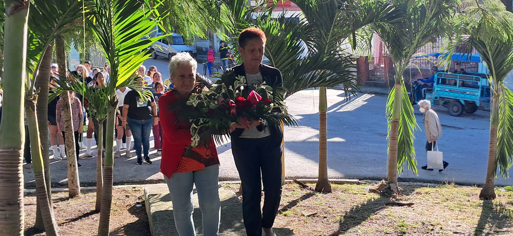 En el homenaje, realizado en el Consejo Popular Santa Catalina, de Santa Clara, donde se mezclaron varias generaciones, se depositó una ofrenda ante la tarja erigida a la flor más autóctona de la Revolución.