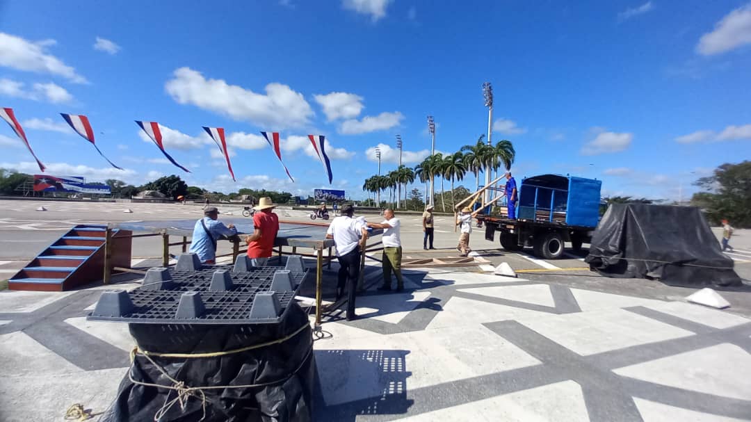 «Cada año nos esmeramos para que todo salga mejor», explicó Francisco Ramas Suárez, jefe de taller de la Empresa de Propaganda, quien detalló que montan plataformas, equipos de audio y embellecen cada rincón de la plaza con el objetivo de que cuando el pueblo acceda encuentre todo correcto.