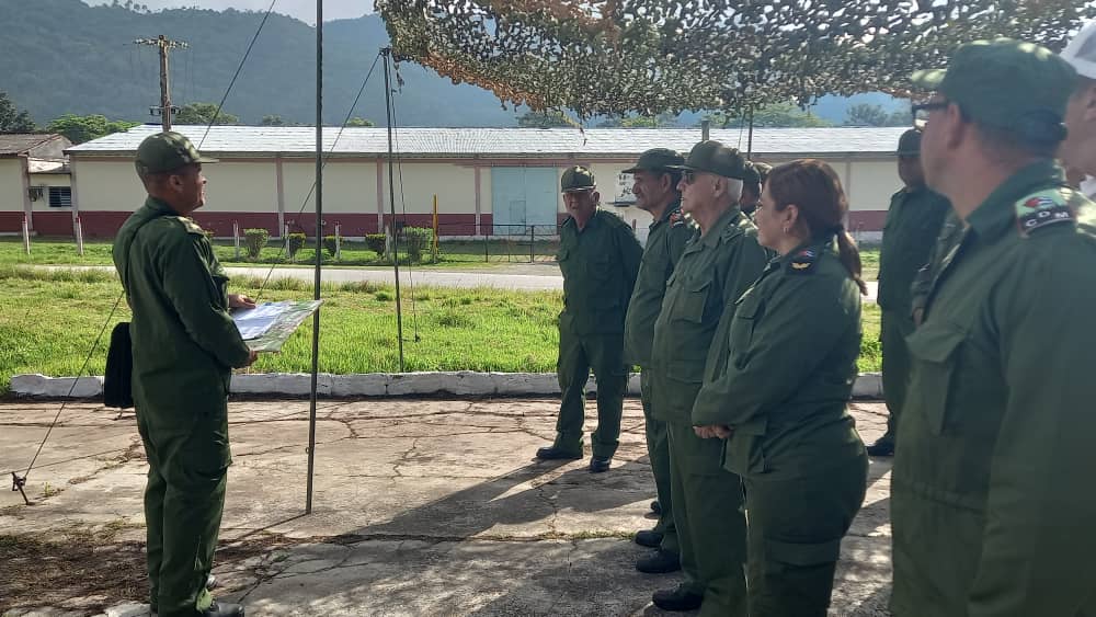 Acompañado por el General de Brigada Israel Cubertier Valdés, jefe de la Región Militar, y por la presidenta del Consejo de Defensa Provincial Susely Morfa González, Quintas Solá presenció varios ejercicios tácticos donde participaron unidades regulares, de Milicias de Tropas Territoriales y Brigadas de Producción y Defensa.