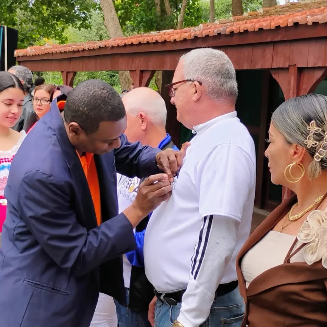 En el encuentro que tuvo lugar en la Cabaña de trabajo del Comandante en Jefe en la provincia, un grupo de trabajadores recibieron la medalla Fernando Chenard Piña, por más de 20 años de trabajo en el sector, de manos de Yaisel Pieter Terry, miembro del Comité Central y Yulian León Rondón, secretario general del Sindicato Nacional de Trabajadores del Comercio y la Gastronomía.