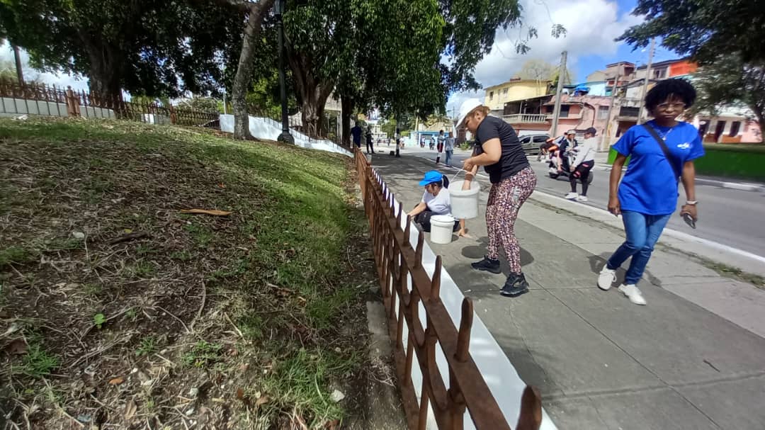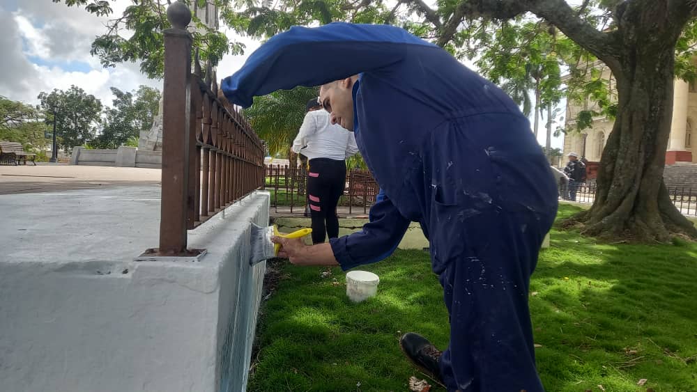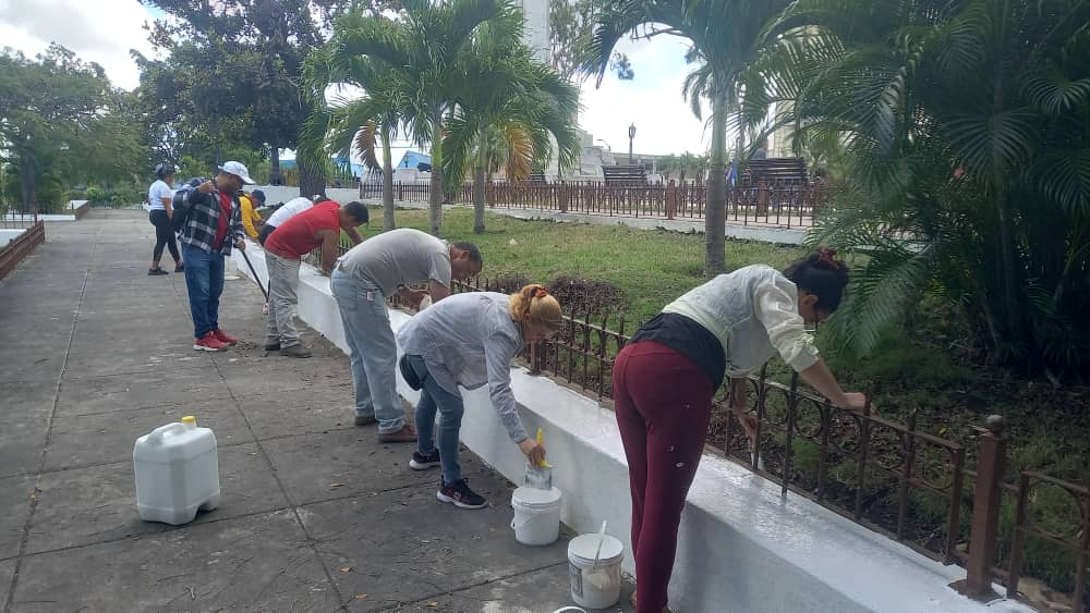 Fuerzas de la Empresa Eléctrica, Servicios Comunales y de las organizaciones políticas y de masas también se sumaron con el propósito de devolver colores a esta hermosa plaza de la ciudad de Marta y del Che.